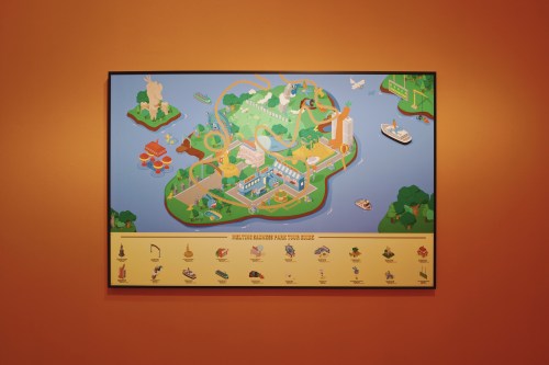 本次展覽以“游樂園”為主題,他通過想象與生活經(jīng)歷構(gòu)建的一座社會游樂園。整個展覽充斥著極具藝術(shù)性的黑色幽默,他充斥著不同人期盼「快樂」的欲望。從作品中坦誠的告訴大家,這個時代只有娛樂才是最讓人傷心的。